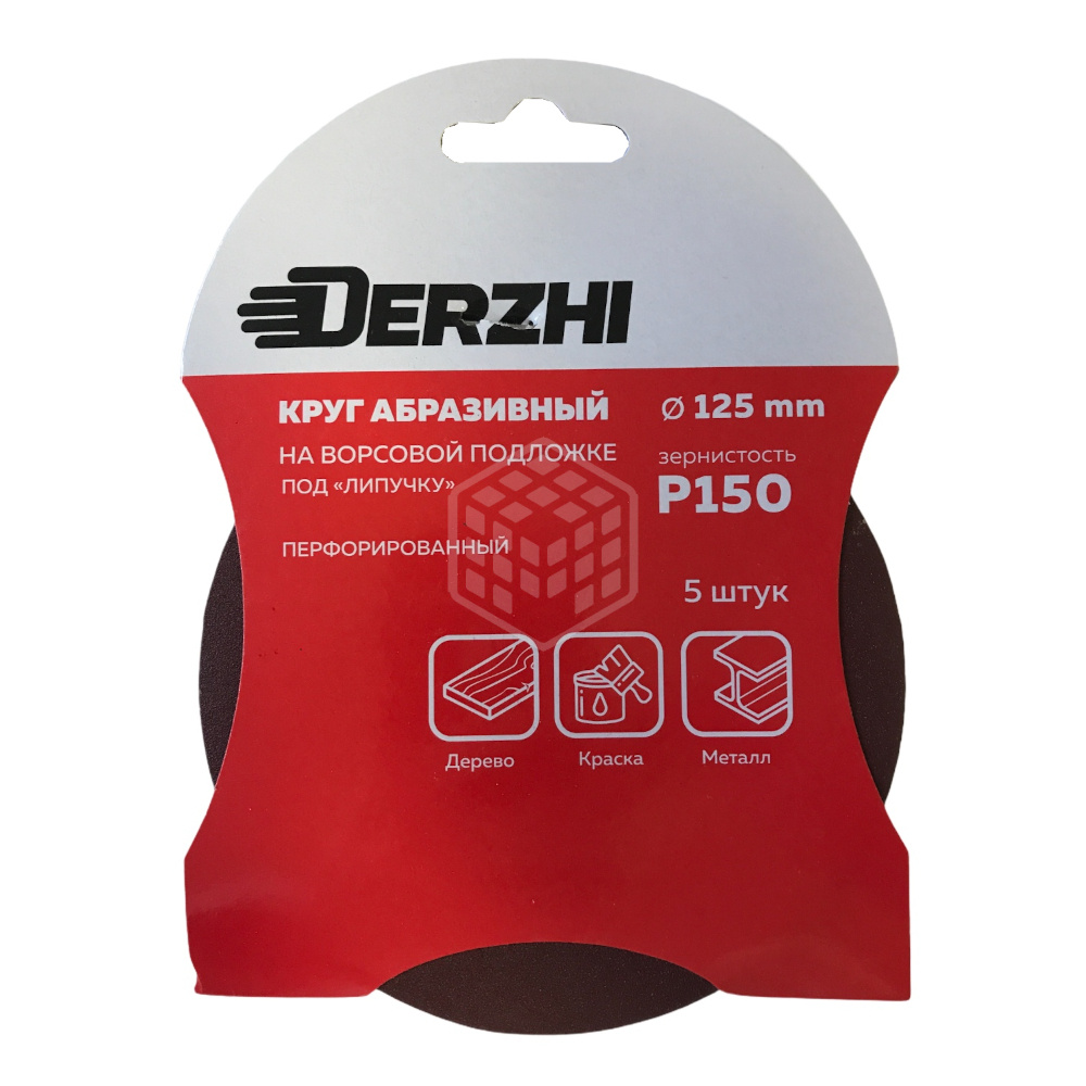 - Шлифкруг DERZHI перфорированный Р150 под липучку 125мм 8873807