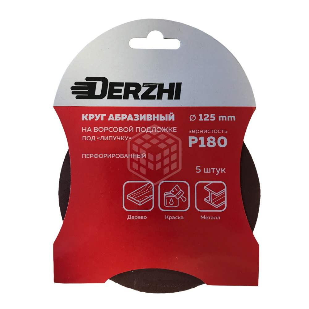 - Шлифкруг DERZHI перфорированный Р180 под липучку 125мм 8873808