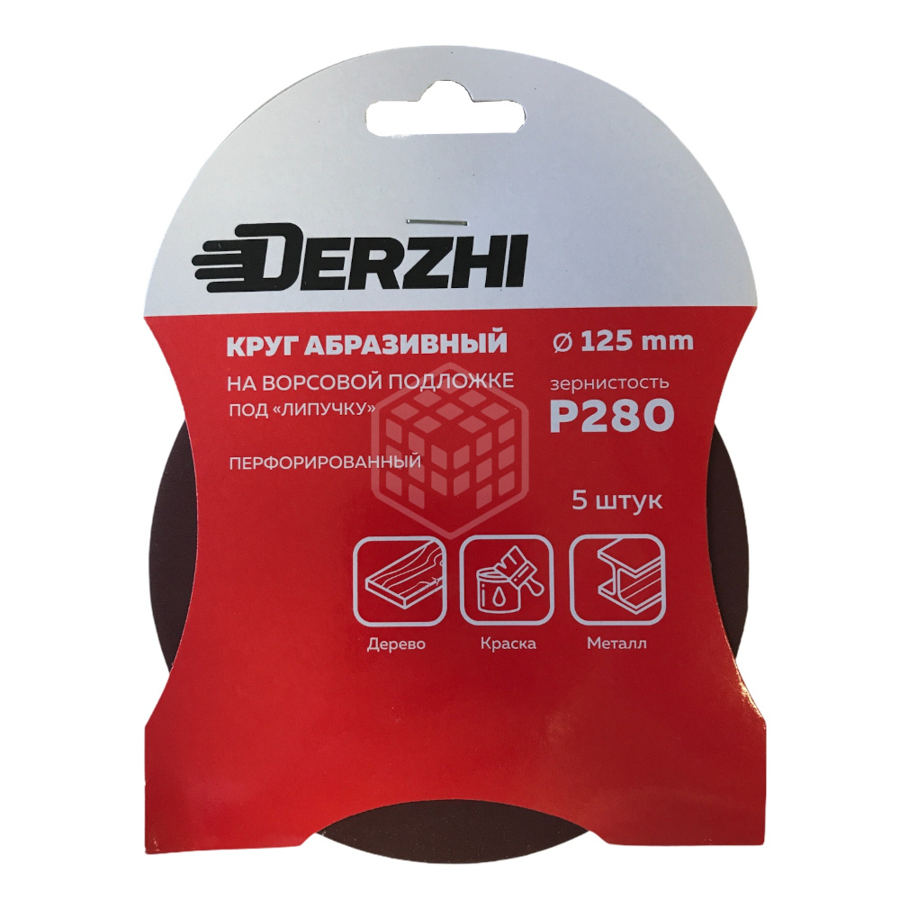 - Шлифкруг DERZHI перфорированный Р280 под липучку 125мм 8873812