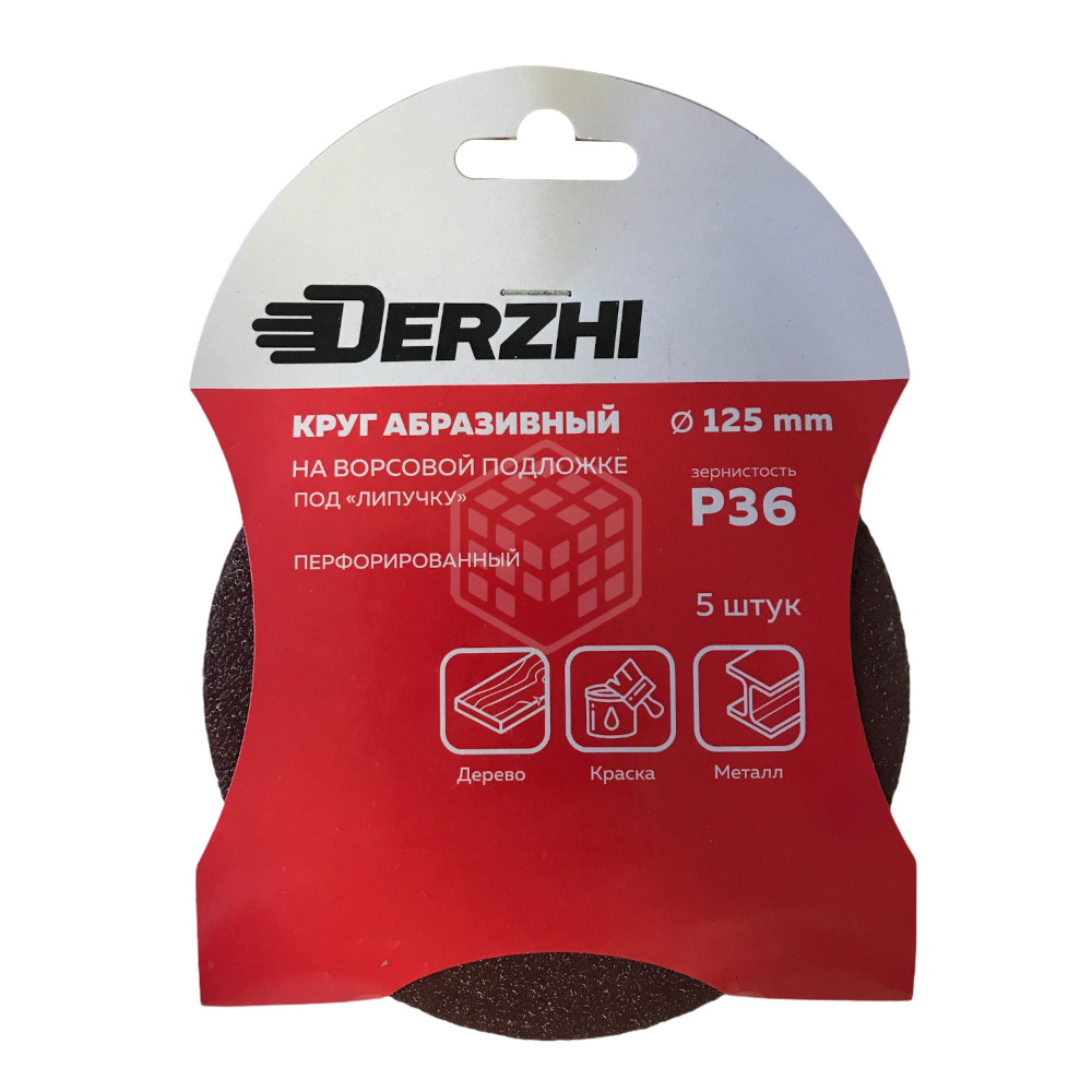 - Шлифкруг DERZHI перфорированный Р36 под липучку 125мм 8873801