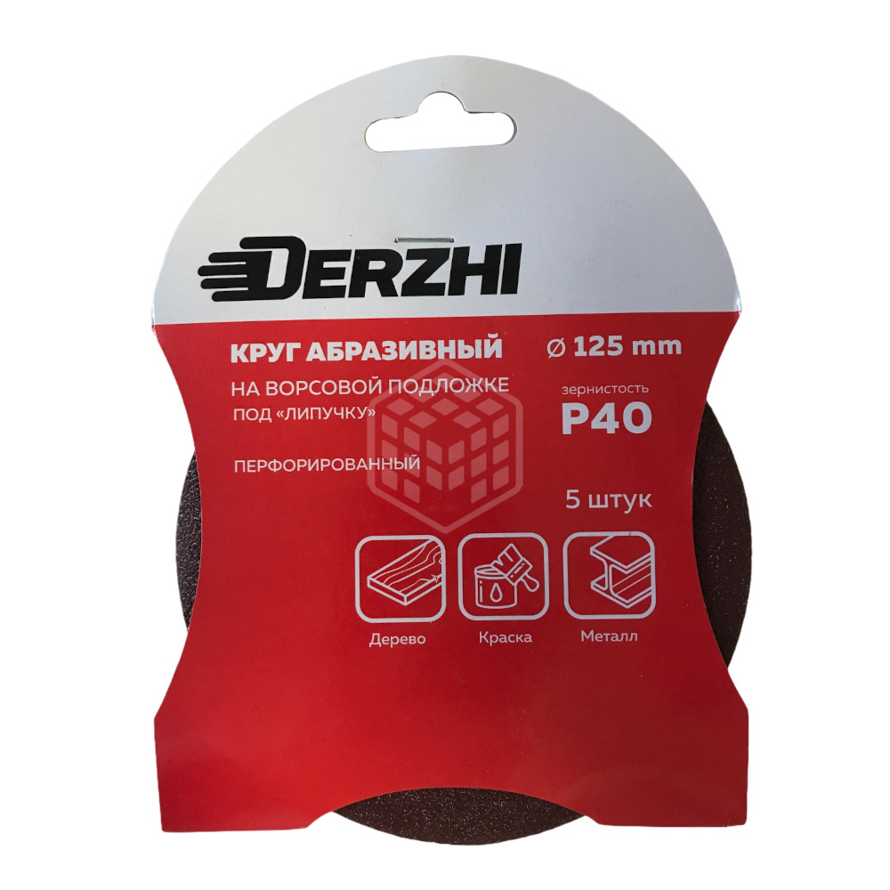 - Шлифкруг DERZHI перфорированный Р40 под липучку 125мм