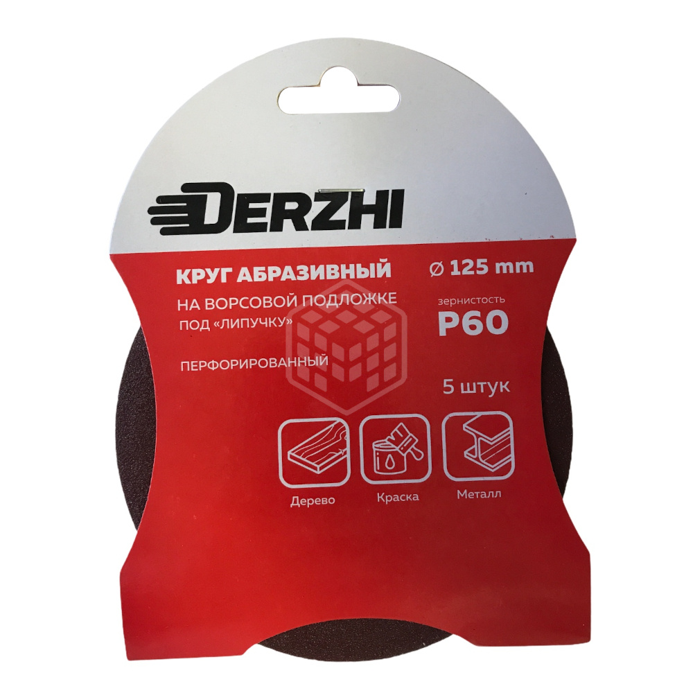 - Шлифкруг DERZHI перфорированный Р60 под липучку 125мм 8873803