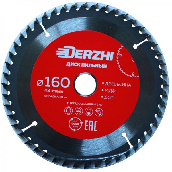Диск DERZHI пильный по дереву 160*20мм,48 зуба, кольцо 16/20 арт.8114-161