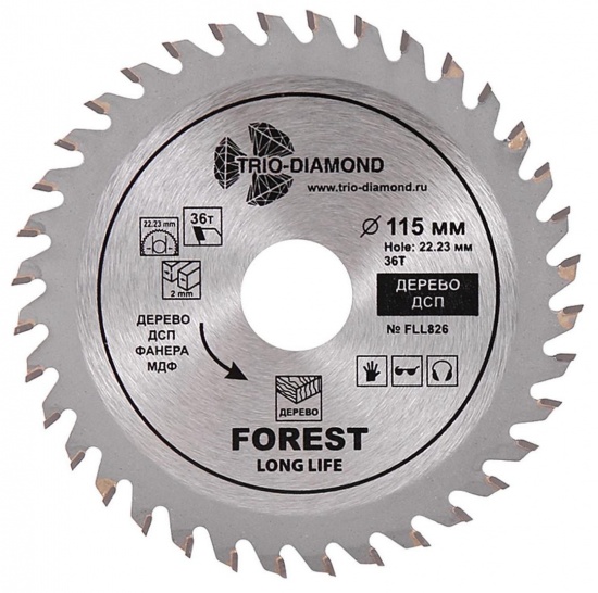 - Диск пильный по дереву Trio Diamond 115*22,23/36Т FLL826