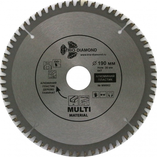 - Диск пильный по мультиматериалам Trio Diamond 190*64Т/30-20-16мм ММ902