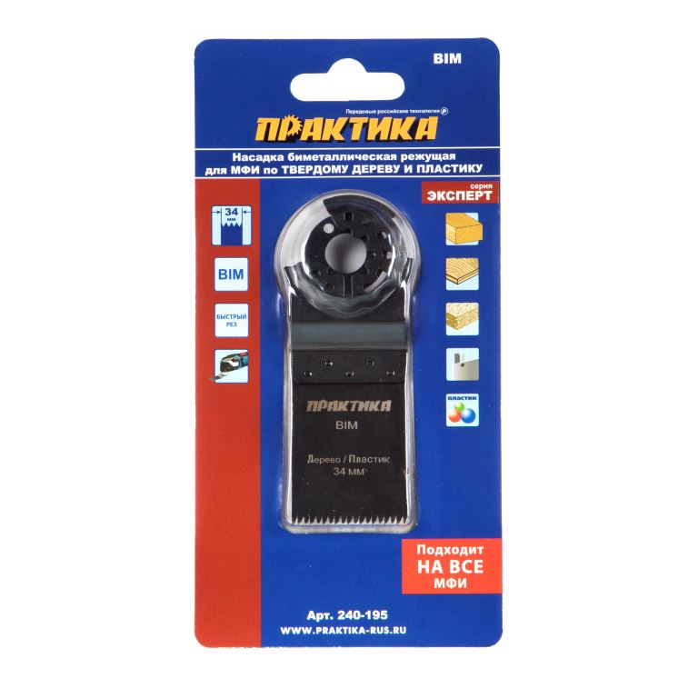 - Насадка для МФИ ПРАКТИКА режущая пазовая прямая,BiM,по тверд.дереву,ДСП,34 мм,крупный зуб 240-195