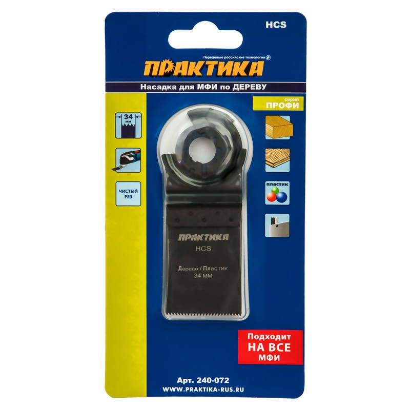 - Насадка для МФИ ПРАКТИКА режущая пазовая прямая HCS, по дереву,34мм, мелкий зуб 240-072