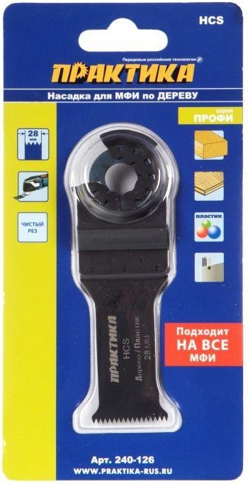 - Насадка для МФИ ПРАКТИКА режущая Т-образная, HCS, по дереву,28мм,мелкий зуб 240-126