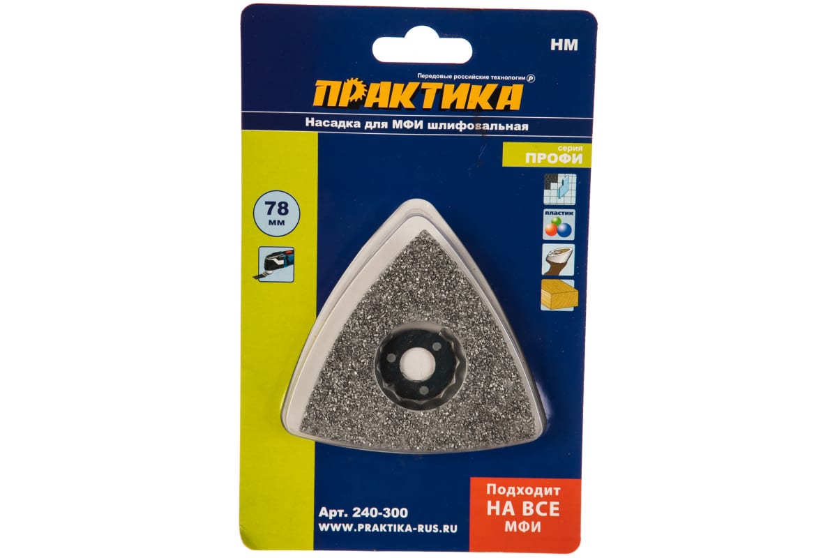 - Насадка для МФИ ПРАКТИКА шлифовальная дельтавидная, HM, по плитке и дереву, 78 мм 240-300