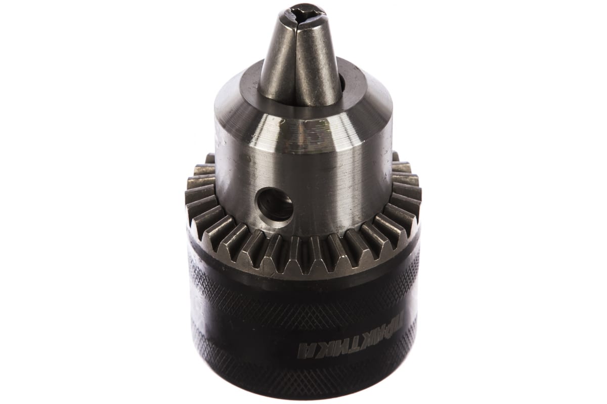 Надежная фиксация сверла в патроне исключает проворачивание. Трехкулачковый патрон с наклонно расположенными кулачками. Для закрепления сверл, а также разверток, зенкеров и зенковок, отвёрточных насадок. Затяжка происходит при помощи идущего в комплекте ключа.Характеристики