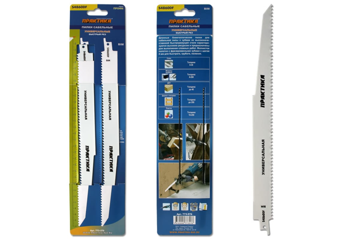 - Пилки для лезвийной пилы ПРАКТИКА S4860DF BIM по дереву/металлу/пластику,шаг 4мм,дл.300мм