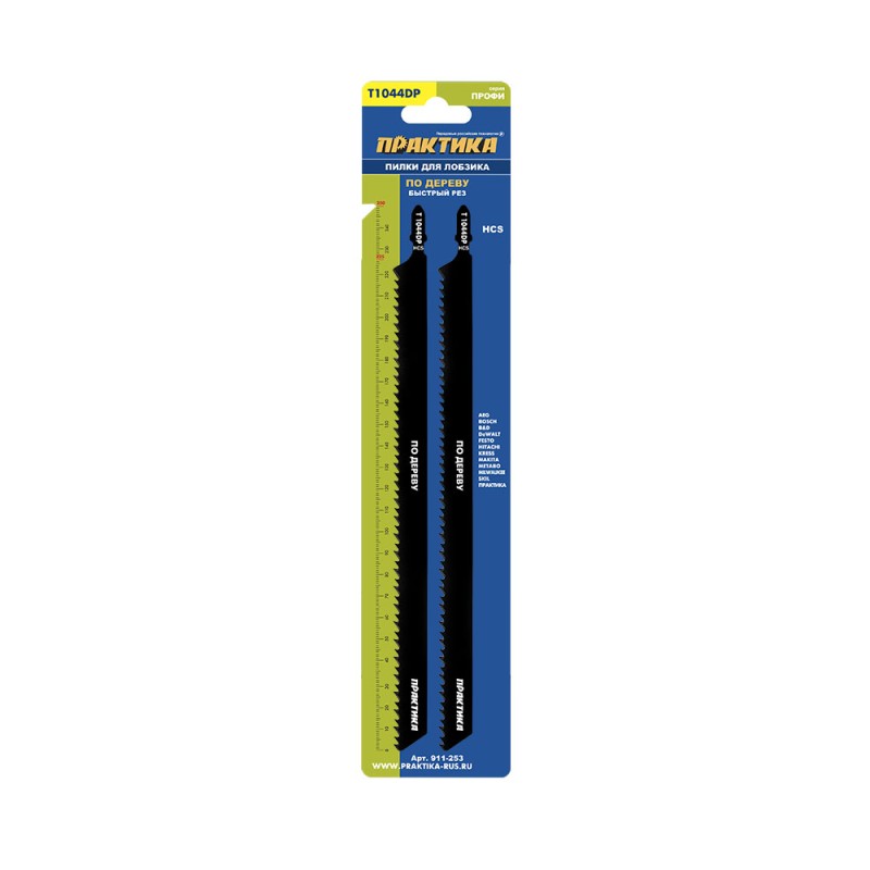 - Пилки для лобзика по дереву, ДСП ПРАКТИКА тип Т1044DP250 x 255 мм, быстрый рез, шаг 4мм, HCS