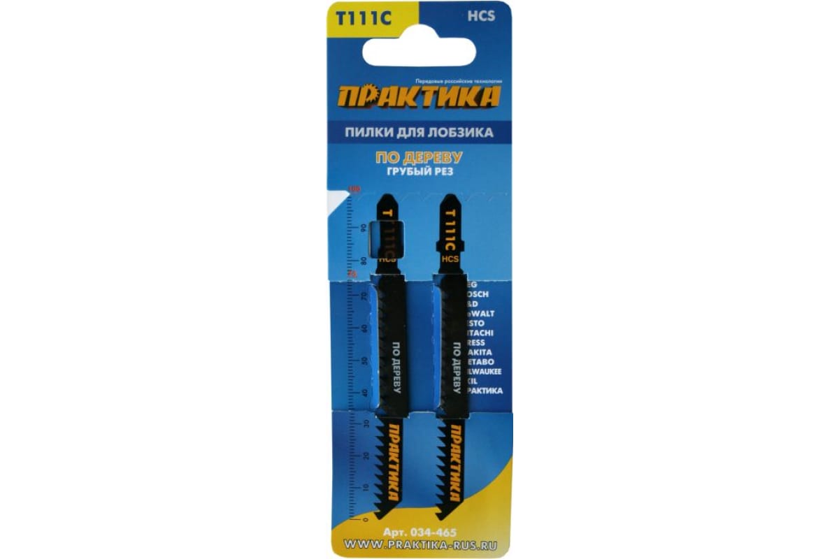Пилки для лобзика по дереву, ДСП ПРАКТИКА тип T111C 100 х 75 мм, грубый рез, HCS