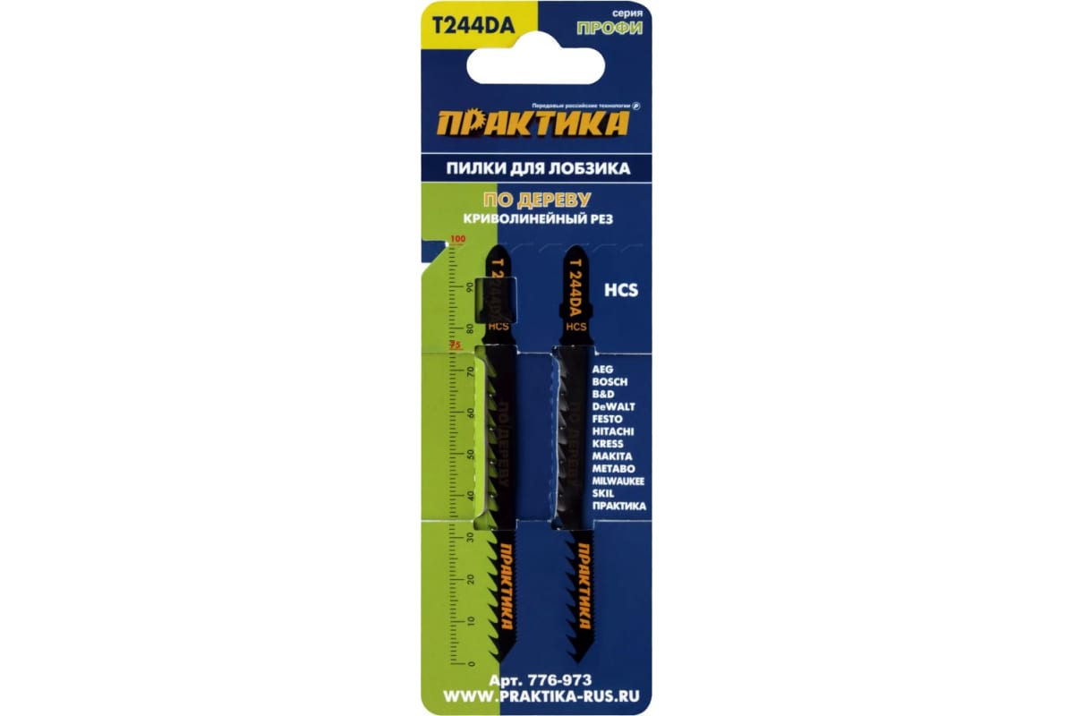 - Пилки для лобзика по дереву, ДСП ПРАКТИКА тип T244DA Обоюдоост 100 x 75 мм, криволин рез, HC