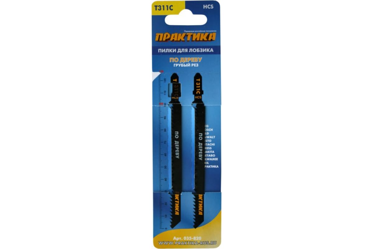 - Пилки для лобзика по дереву, ДСП ПРАКТИКА тип T311C 126 х 100 мм, грубый рез, HCS 035-820