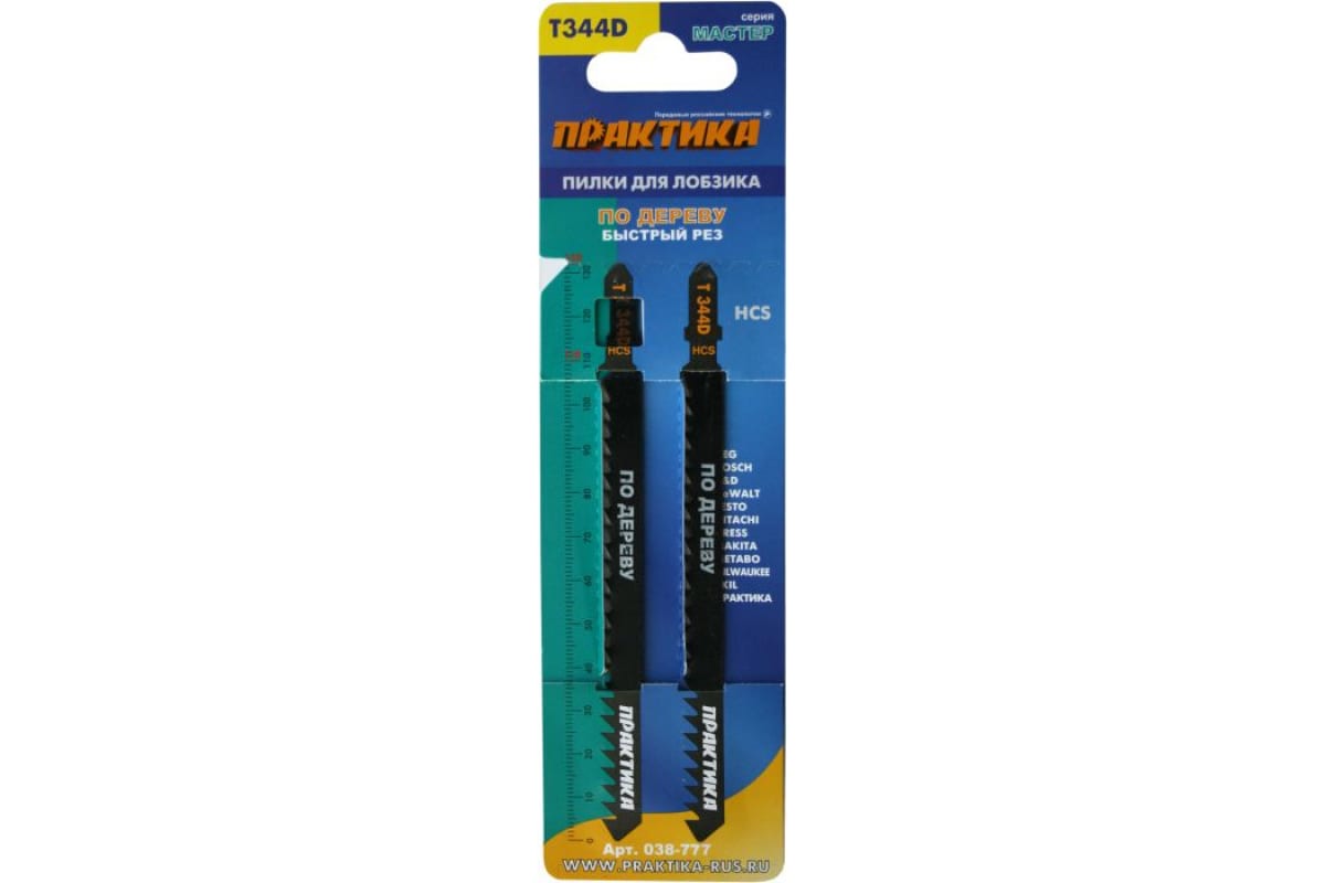 - Пилки для лобзика по дереву, ДСП ПРАКТИКА тип T344D 132 х 110 мм, быстрый рез, HCS 038-777