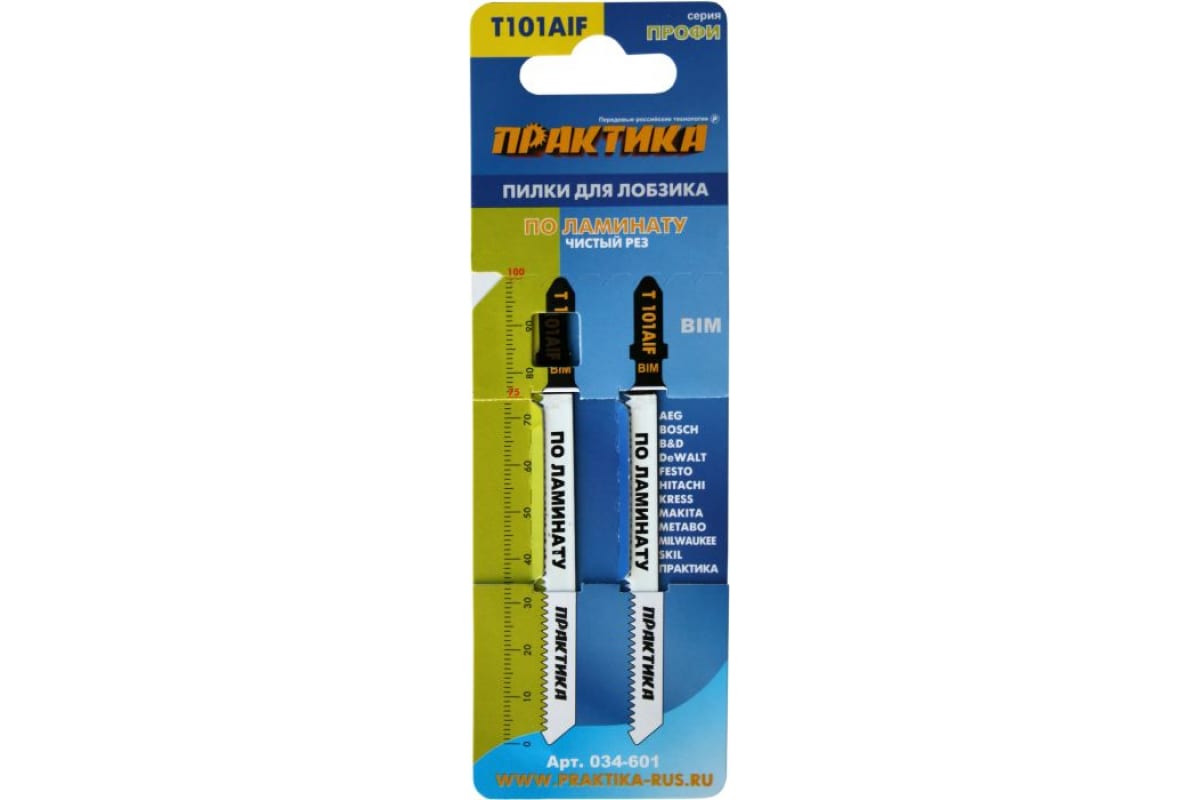 - Пилки для лобзика по ламинату ПРАКТИКА тип T101AIF 100 х 75 мм, чистый рез, BIM 034-601