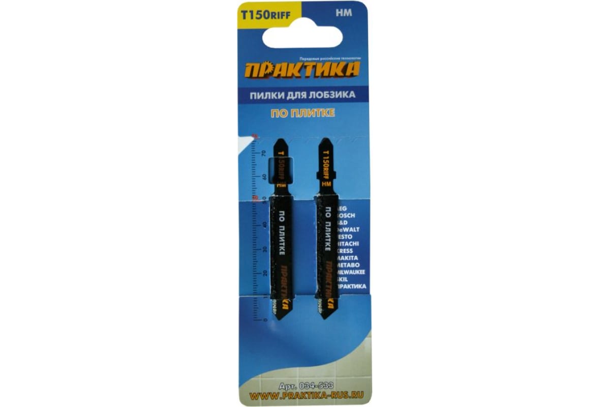 - Пилки для лобзика по плитке ПРАКТИКА тип T150RIFF 76 х 50 мм, чистый рез, HM 034-533