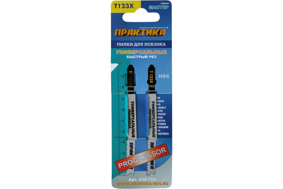 - Пилки для лобзика универсальные ПРАКТИКА тип T123X Прогрессор 100 х 75 мм, грубый рез, HSS 038-722