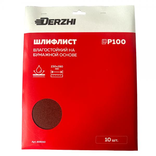 Шлифлист DERZHI 230*280мм на бум.осн. влагостойкий Р100 856010