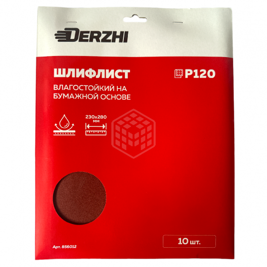 - Шлифлист DERZHI 230*280мм на бум.осн. влагостойкий Р120 856012