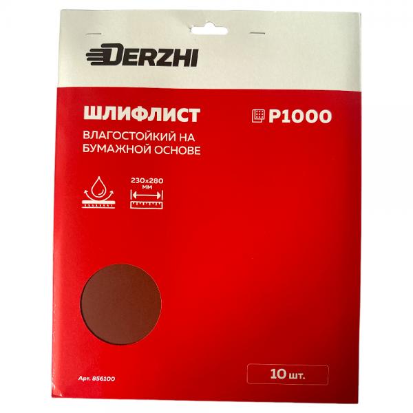 Шлифлист DERZHI 230*280мм на бум.основе влагостойк.Р1000
