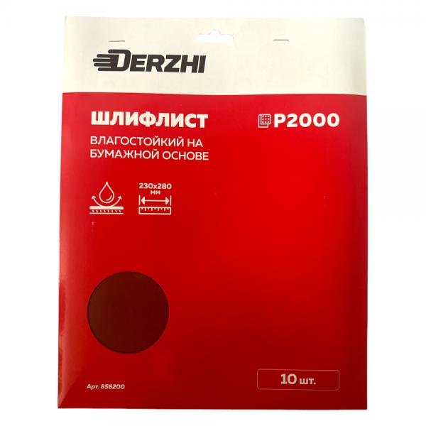 Шлифлист DERZHI 230*280мм на бум.основе влагостойк.Р2000