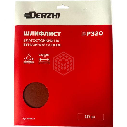 - Шлифлист DERZHI 230*280мм на бум.основе влагостойк.Р320 арт 856032