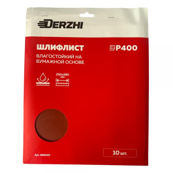 - Шлифлист DERZHI 230*280мм на бум.основе влагостойк.Р400 арт 856040
