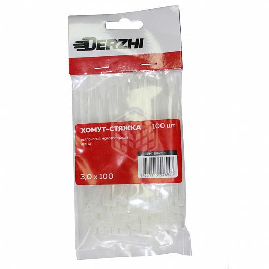Хомут-стяжка DERZHI нейлоновые белые 3*100 158-310