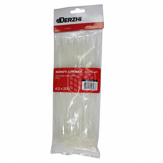 Хомут-стяжка DERZHI нейлоновые белые 4*200 158-420