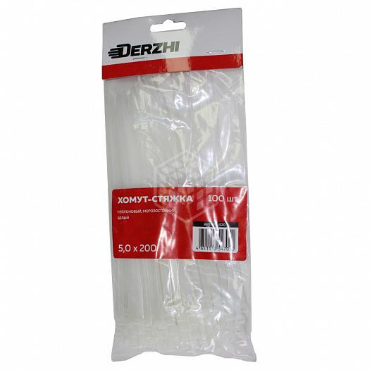 Хомут-стяжка DERZHI нейлоновые белые 5*200 158-520
