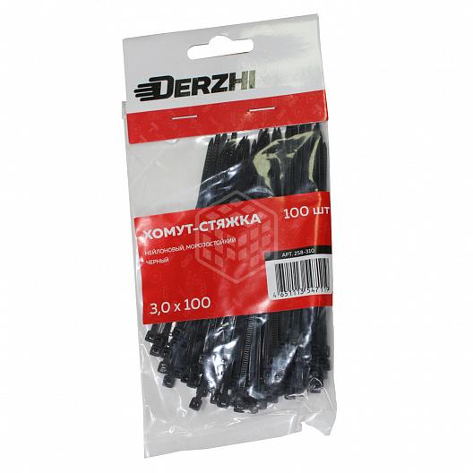 Хомут-стяжка DERZHI нейлоновые черные 3*100 258-310