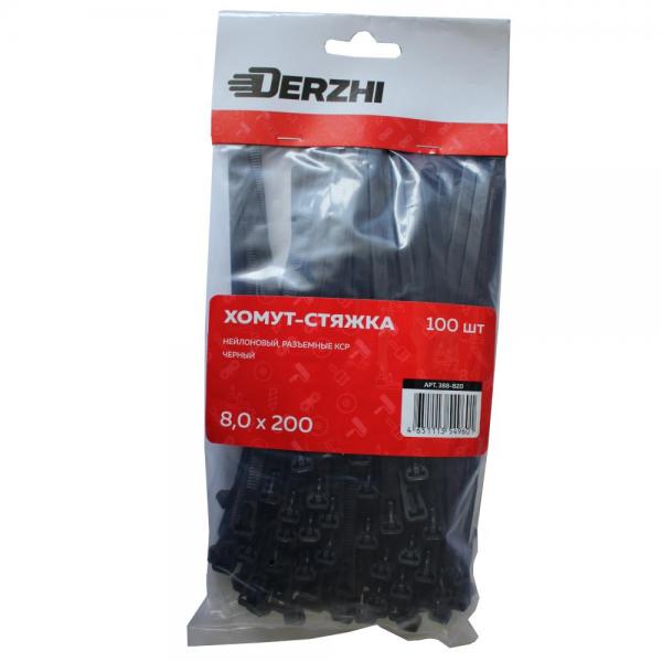 - Хомут-стяжка DERZHI нейлоновые черные разъемные 8*200