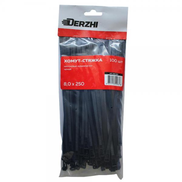 Хомут-стяжка DERZHI нейлоновые черные разъемные 8*250