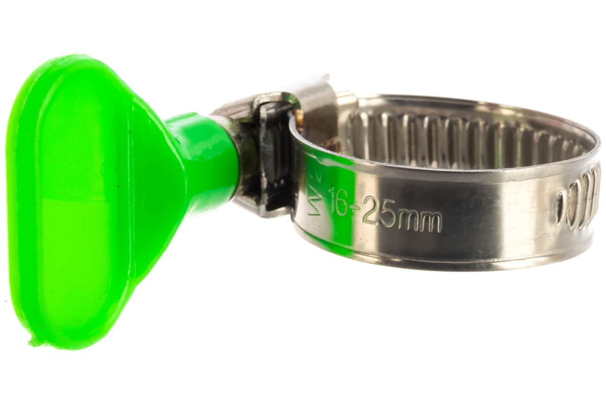 Обжимной хомут 16-25 мм с бабочкой представляет собой соединительный элемент для обжима шлангов и труб. Корпус изготовлен из нержавеющей стали. Хомут оснащен пластиковой ручкой бабочкой, которая позволяет подстраивать изделие по диаметру трубы.Характеристики