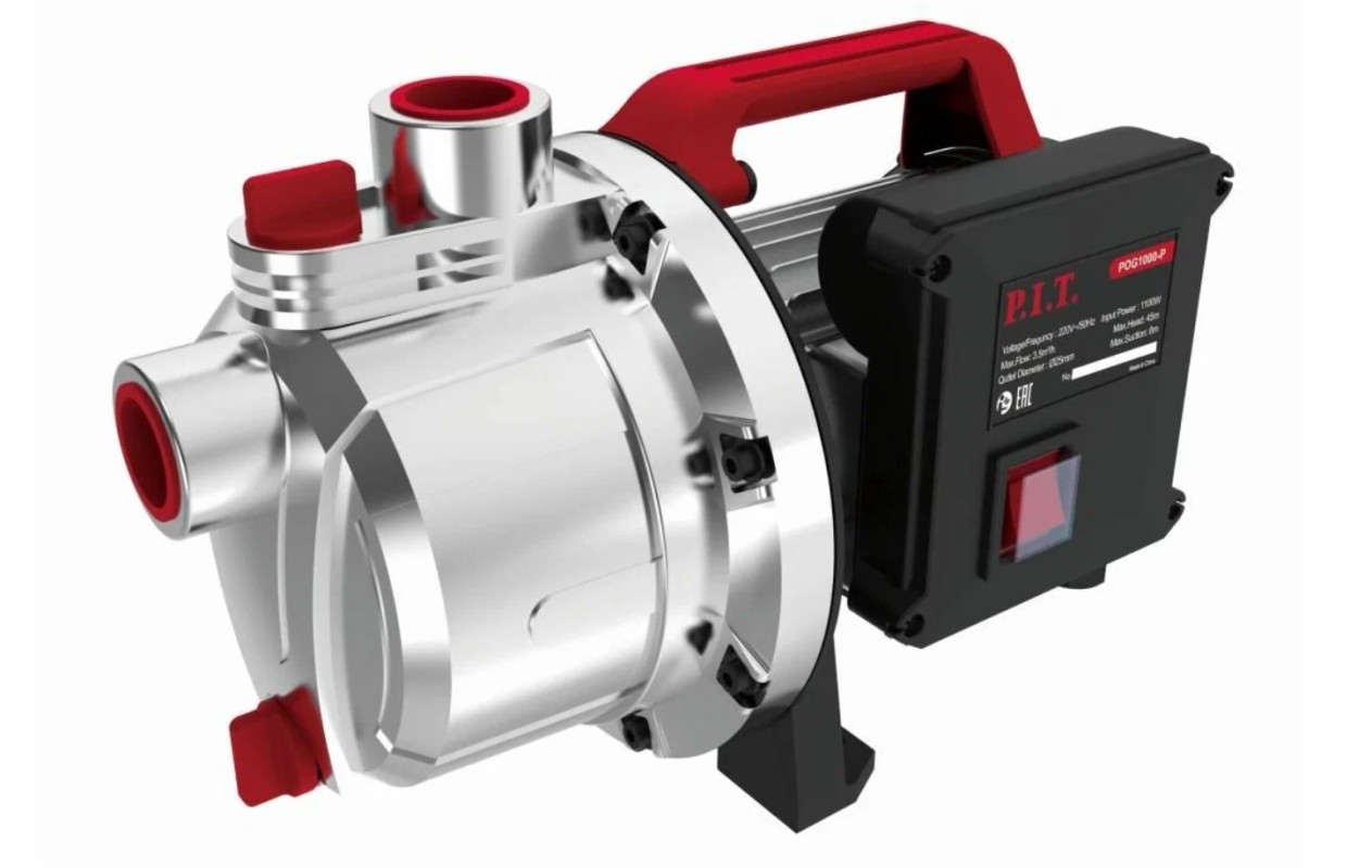 - Насос садовый P.I.T. POG1000-P (1100Вт,напор 40м,всасывание 8м,произ-ть 58л/мин,нерж.)