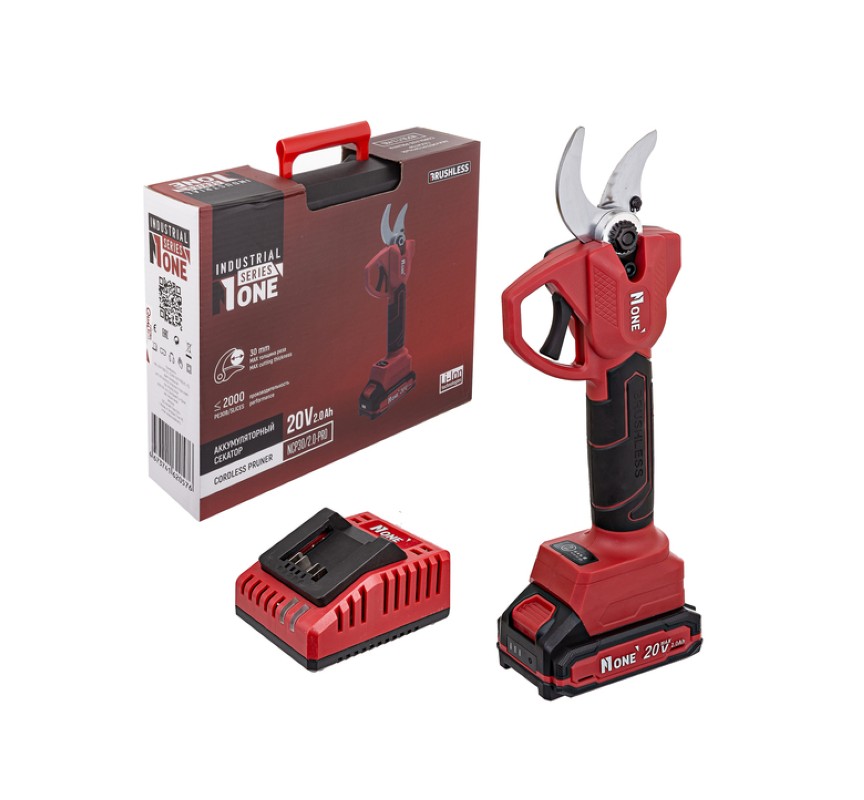 Аккумуляторный секатор №1 INDUSTRIAL NCP30/2.0-PRO оснащен мощным щеточным двигателем, благодаря которому обеспечивается быстрая и эффективная работа. Инструмент предназначен для ухода за садовыми растениями, с его помощью можно обрезать побеги, черенки, стебли и ветки диаметром до 30 мм. Режущие полотна произведены из стали марки SK5. Эргономичная прорезиненная рукоятка и малый вес инструмента позволяют работать с ним одной рукой.Характеристики