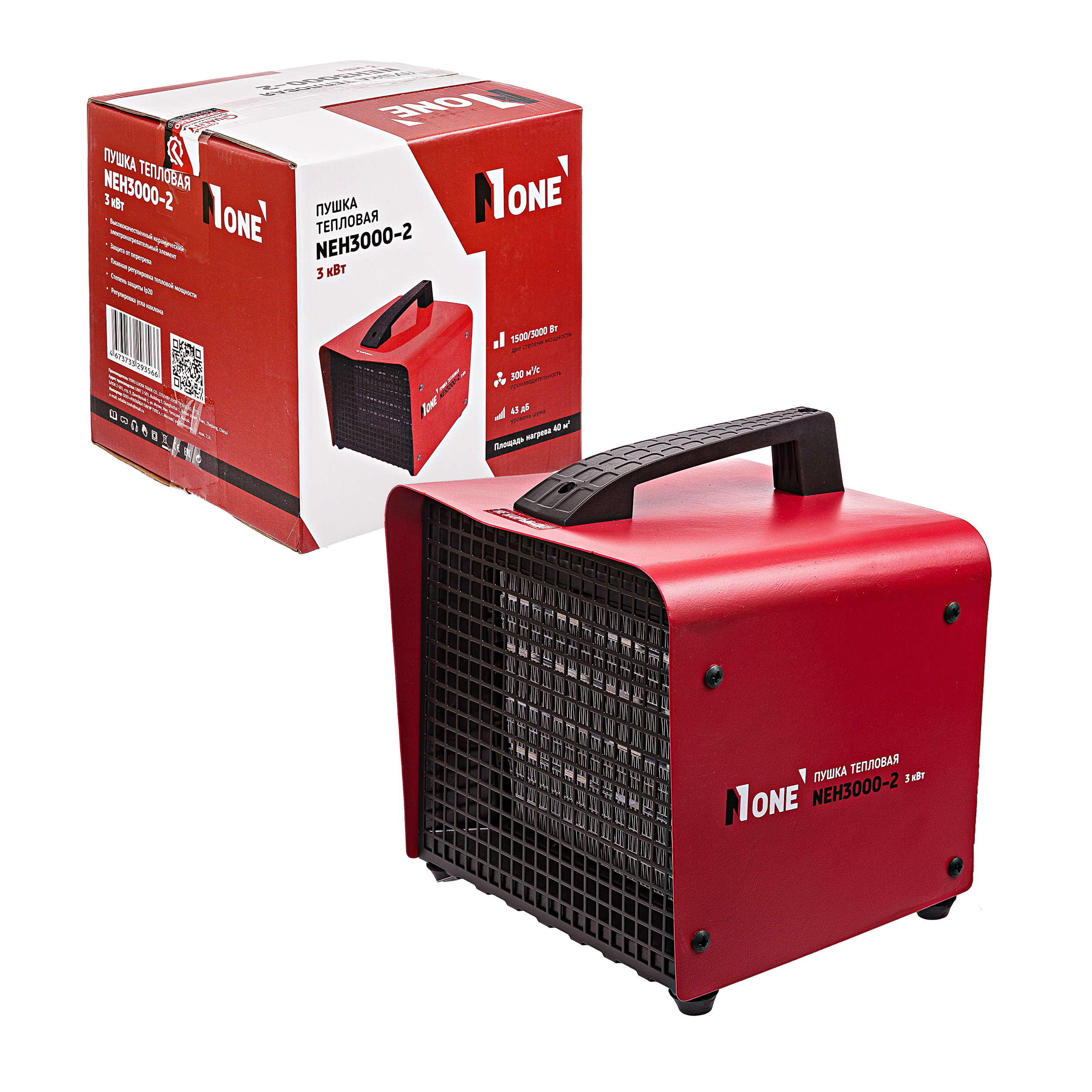 Пушка электрическая NUMBER ONE NEH 3000-2- высококачественный керамический электронагревательный элемент.Имеет защиту от перегрева,плавную регулировку тепловой мощности и регулировку угла наклона. Подходит для обогрева помещений до 40 кв.м.Есть два режима работы: пониженная (1.5 кВт) и повышенная (3 кВт) мощность. Работает от сети 220 Вольт. Можно использовать для обогрева производственных и жилых помещений. Быстро создаёт поток горячего воздуха. Удобно переносить (сверху ручка), минимальный вес. Устойчивое положение на любой поверхности. Исключайте попадание капель жидкости на прибор.Характеристики
