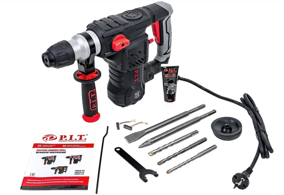- Перфоратор P.I.T. РВН32-С5 МАСТЕР (3-реж,вертик,1600 Вт,6 Дж,SDS-MAX,буры+смазка)