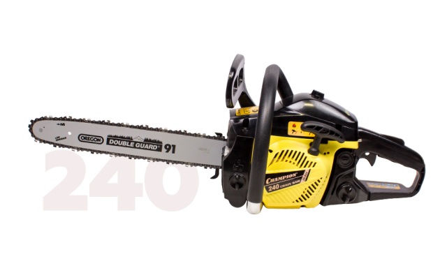 Бензопила CHAMPION 240 предназначена для распиливания заготовок из древесины, раскряжевки и валки деревьев, спиливания ветвей. Инструмент оборудован уловителем цепи, рычагом тормоза, цепью с низкой отдачей и блокиратором курка газа, что повышает безопасность использования. Функция легкого запуска обеспечивает быстрый и легкий старт данной модели. Высокая производительность достигается за счет мощного бензинового двигателя, поддерживающим скорость цепи до 12000 об/мин.Характеристики