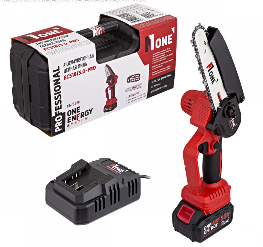 - Акк. цепная пила Number one ECS18/3/0-PRO(18 V, 3,0 Ач, З/У15,2см шина 37зв.+10 смшина 28зв.)Кейс