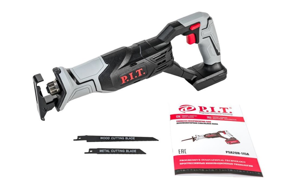 - Пила сабельная аккумул P.I.T. PSA20H-115A SOLO (20В,0-2700ход/мин,БЗП,пропил 115мм,ход 22мм,коробка)