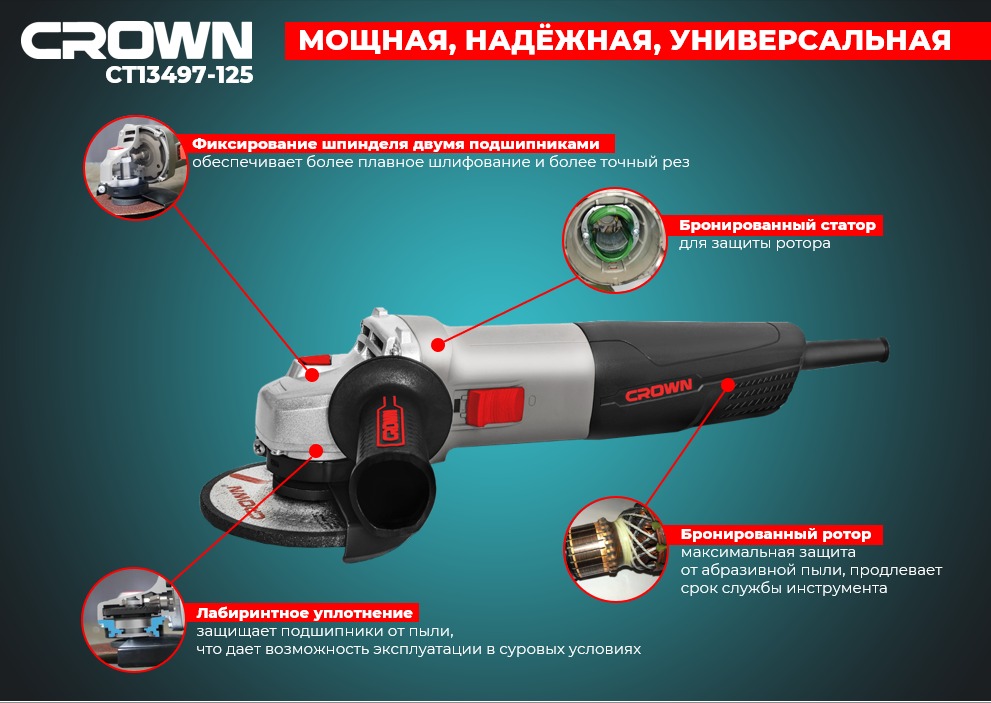 - УШМ (болгарка) CROWN CT13497-125 860Вт, 125мм