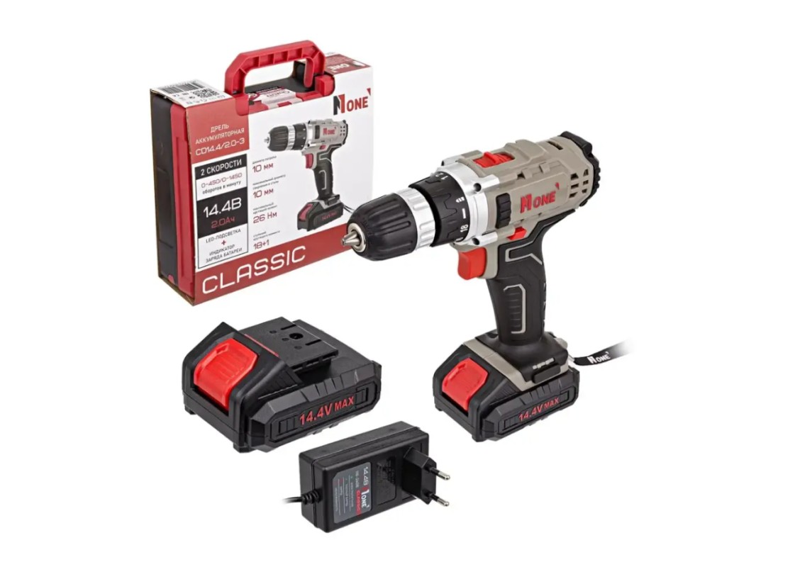 - Аккум. дрель Number one CD14,4/2.0-3 CLASSIC (2скорости, 2аккумулятора, 14,4 В, 2А*ч, КЕЙС)