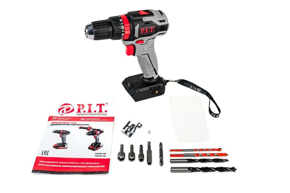 - Аккумуляторная дрель ударная бесщеточная P.I.T. PSB20Н-10В SOLO
