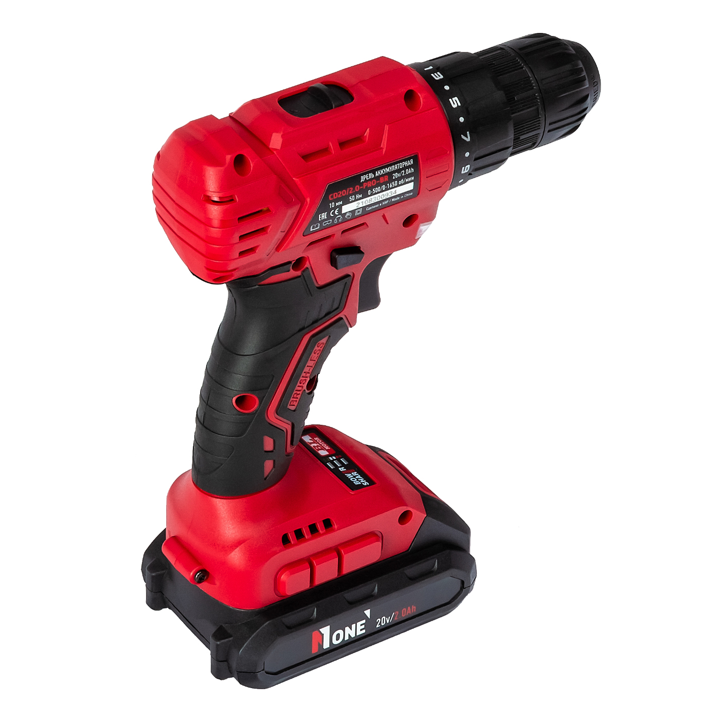 - Шуруповерт Number one CD20/2,0-PRO-BR (20V,2,0A/h,2 акк.,2 скор., LED подсвет.,фикс.шпинд.,кейс)