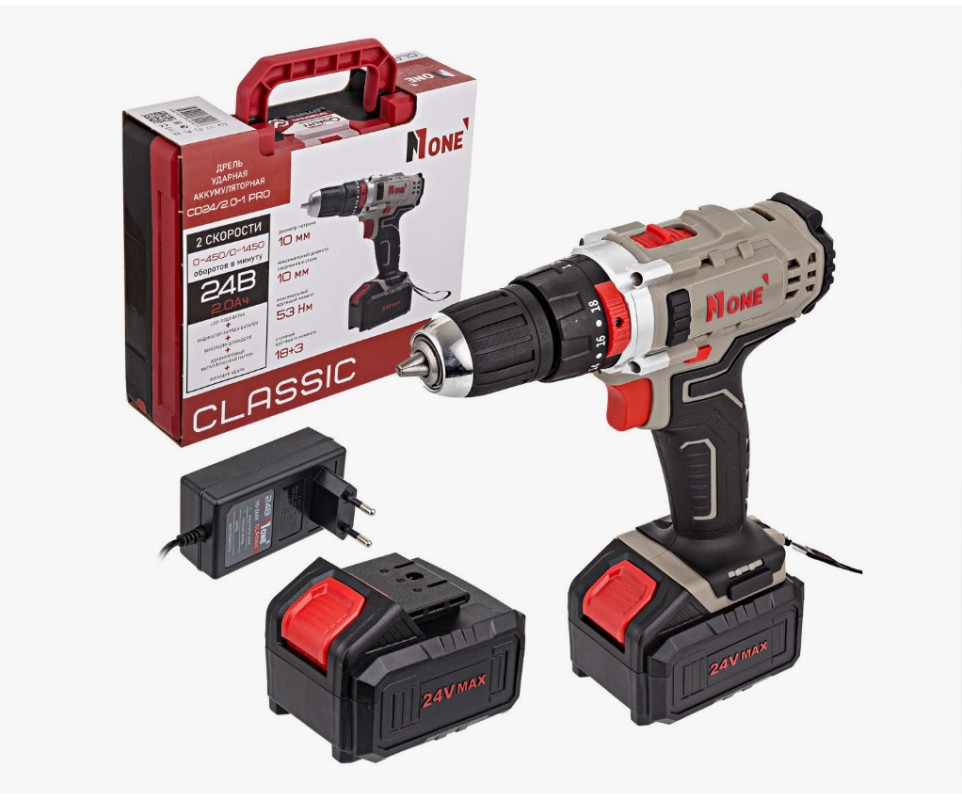 - Шуруповерт Number one CD24/2,0-1- PRO CLASSIC (24 V, 2 a/h, 2 скорости, 2аккум.индик. заряда, кейс)