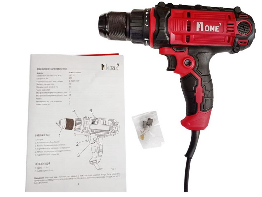 - Шуруповерт сетевой Number one ЕD650/13-PRO (650Вт,50Hm.13мм мет.патрон, 4 м сет.кабель2скор.,реверс)