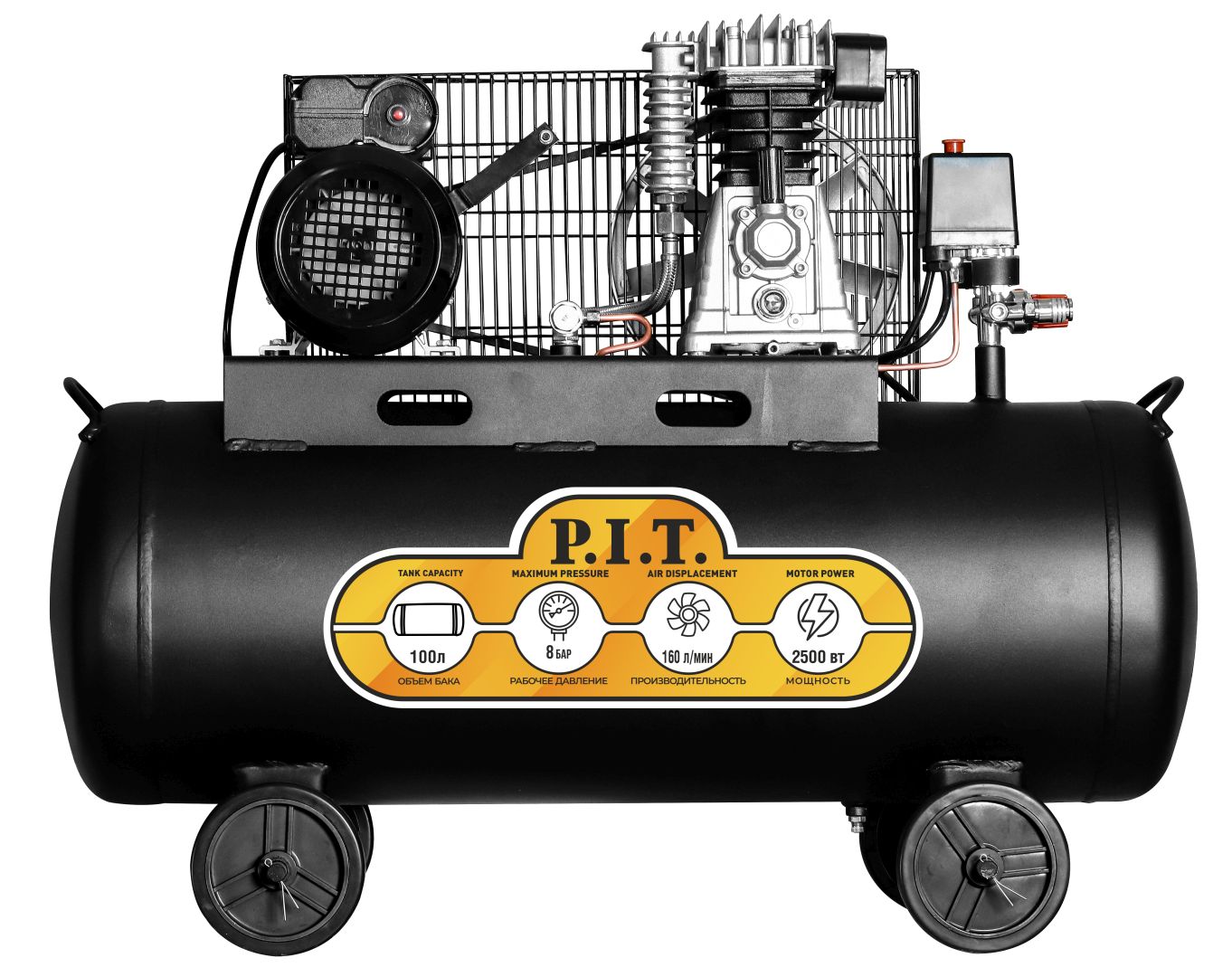 - Компрессор P.I.T. РАС100-С (2,5кВт, 3,4 лс, 330 л/мин, 100л, 2цил, 2вых. евро)
